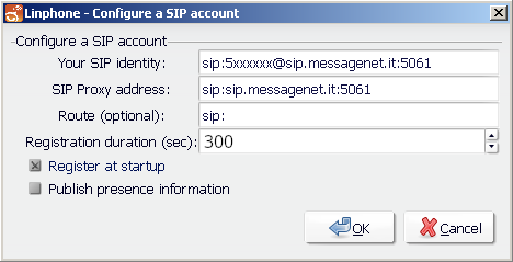 - Your SIP Identity: sip:5xxxxxx@sip.messagenet.it:5061
